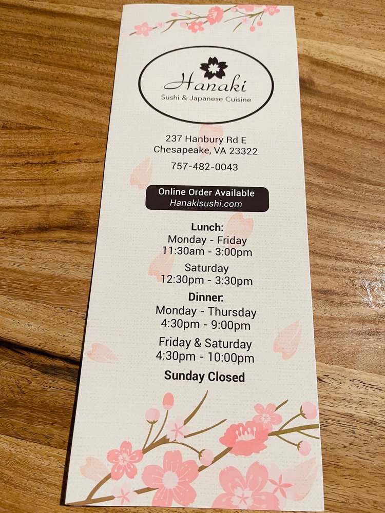 Hanaki Sushi, located in Chesapeake, VA, offers a delightful dining experience for sushi lovers. With a cozy and intimate ambiance, the restaurant provides excellent service and an impressive variety of menu options. Customers rave about the freshness of the seafood, particularly highlighting the whole grilled squid and the flavorful sushi rolls. The attentive staff and fast service make dining here a pleasant experience. Whether you're a sushi enthusiast or looking to try something new, Hanaki Sushi is sure to impress with its delicious food and welcoming atmosphere. Don't miss out on their seafood soup, a customer favorite, and be sure to enjoy their delightful Happy Hour specials. Experience the best sushi in Hampton Roads at Hanaki Sushi.